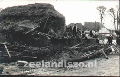 De cycloon ging na Langenboom weer omhoog en zakte weer naar beneden in het stadje Borculo in de achterhoek. Grote stukken van het centrum van Borculo werden totaal vernield. In Zeeland vielen helaas 2 doden. Twee kinderen vonden onder het puin van hun ingestorte huis de dood. |